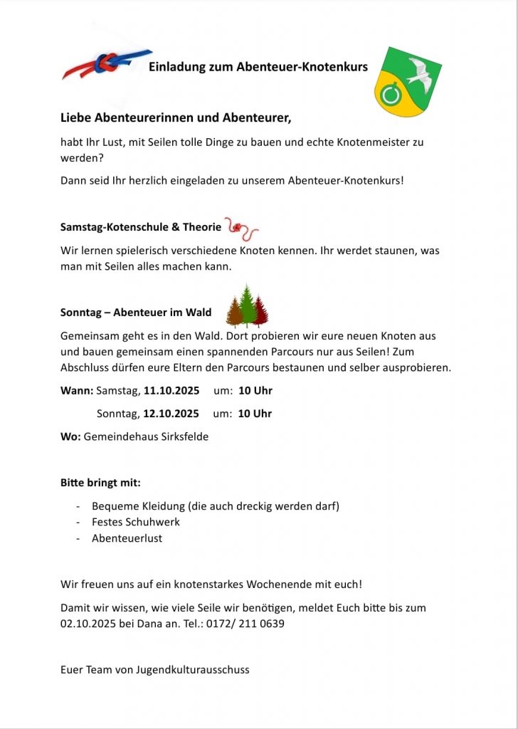 Dazu trafen sich am Samstag 10 Kinder mit Torsten und Marco zur Knotenkunde am Gemeindehaus.