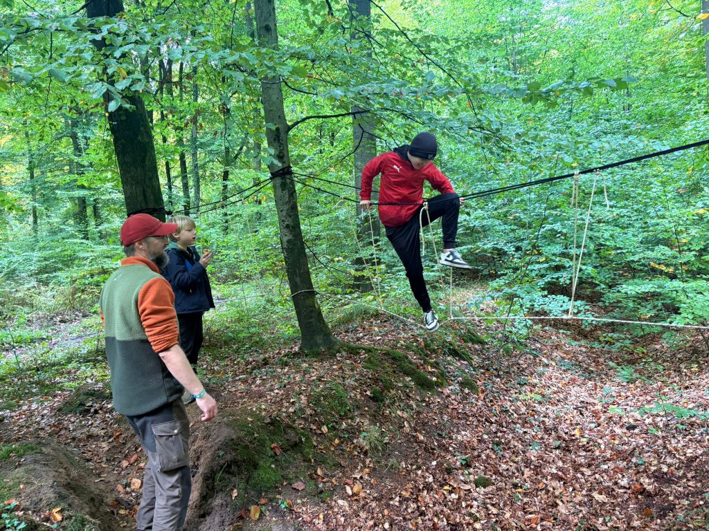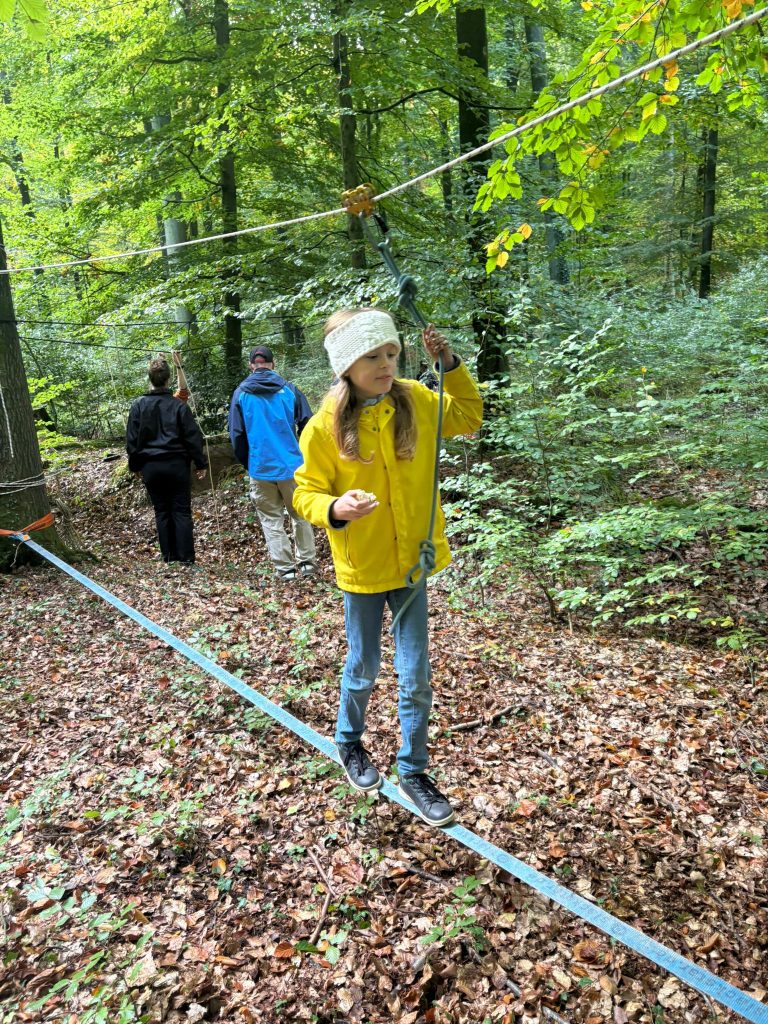 Die Kinder hatten die Möglichkeit, zu schaukeln und auf einer Burmabrücke über einen Graben (für die Kinder war es ein Canyon mit Krokodilen) zu kletten, um anschließend auf einer Slackline das Ende des Parcours zu erreichen.