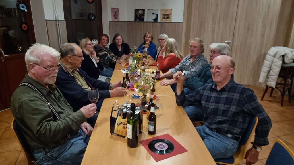 Wir saßen in illustrer Runde mit selbst mitgebrachen Getränken, Süßigkeiten und jeder Menge Schallplatten aus unserer Zeit: Pink Floyd, Carpenters, Mix, Dire Strates, Simon & Garfunkel und viele mehr.