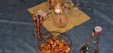 Es gibt Snacks und Tee, auch Wein und Salzgebäck wurde von den Teilnehmerinnen mitgebracht.