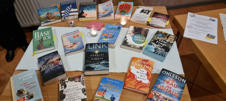 Wie immer zu Beginn eines neuen Jahres in der Winterzeit/Lesezeit trifft sich der Literaturkreis der lesefreudigen Sirksfelderinnen. Auch diesmal ist der Tisch im Gemeindehaus von der Vertreterin des Jugend- und Kulturausschuss freundlich hergerichtet mit Kerzen, Naschereien und Getränken. Wir klönen zuerst über die Neuigkeiten und was uns sonst so beschäftigt und dann geht’s an die Buchempfehlungen.